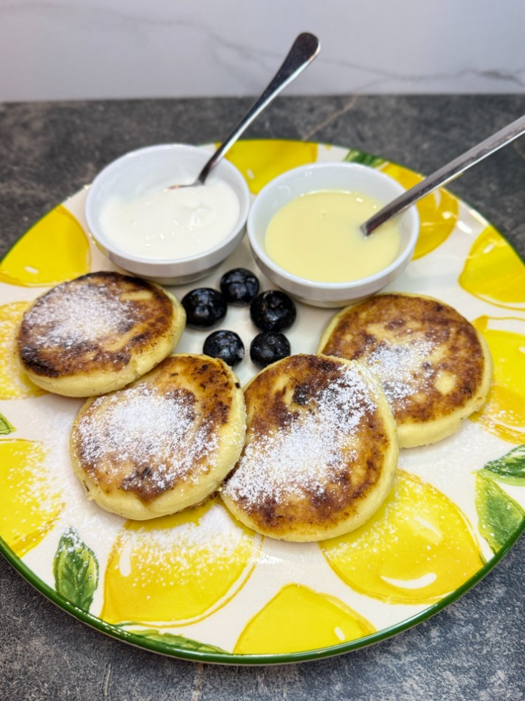 Сирники з домашнього сиру зі сметаною та згущеним молоком