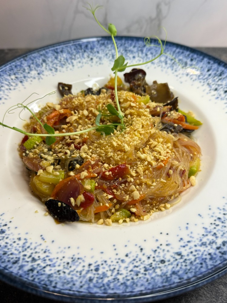 Фунчоза з овочами та ананасом в апельсиновому соусі